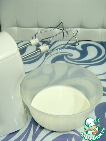 Взбиваем охлажденные сливки (33-35% это важно!).