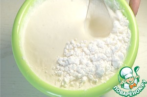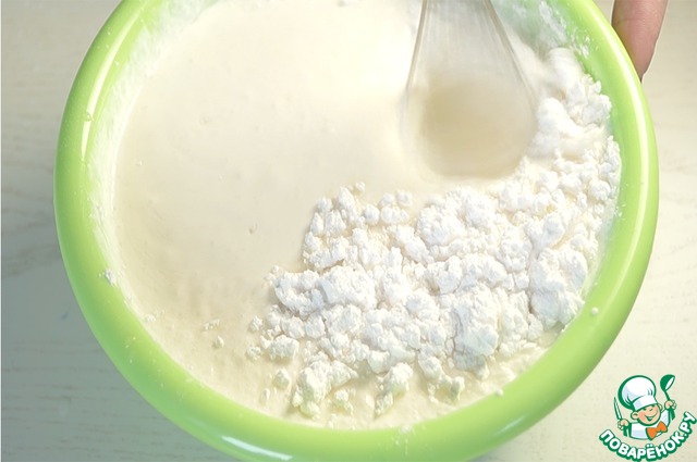 • 4. Просеиваем муку и ещё раз аккуратно перемешиваем