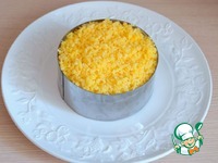 Салат посыпать натертый яичным желтком. Яичный слой можно слегка посолить.