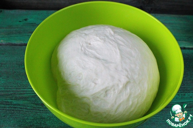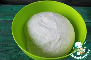 Тесто кладем в миску, предварительно смазанную растительным маслом. Убираем тесто в теплое место минут на 30-40 до увеличения в объеме.