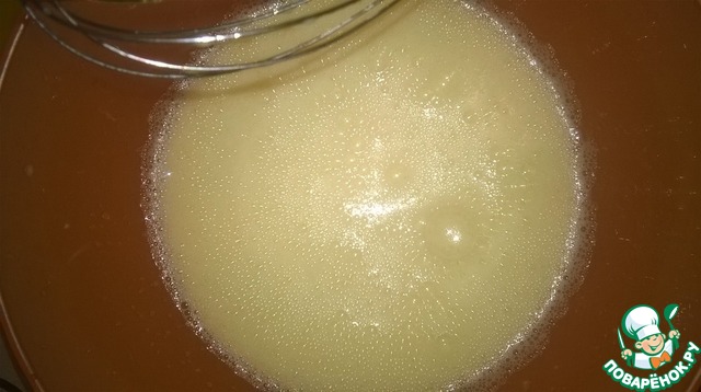 Взбить яйца в пену. Я готовила двойную порцию, объемы у меня больше, так что не пугайтесь.