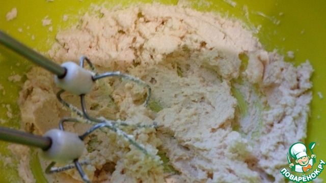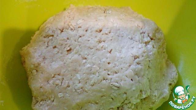 Соединить масляную смесь с мукой и разрыхлителем, смешать с хлопьями и стружкой. Сделать вот такое тесто.