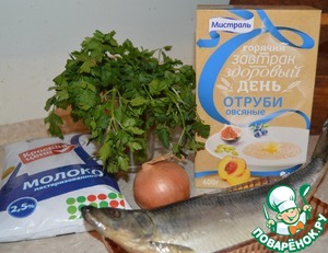Для приготовления нам понадобится: селедка, лук репчатый, молоко, отруби овсяные, масло оливковое, уксус, петрушка, черный молотый перец.