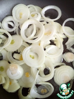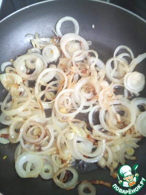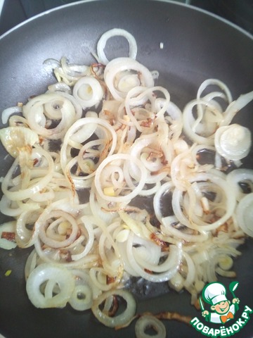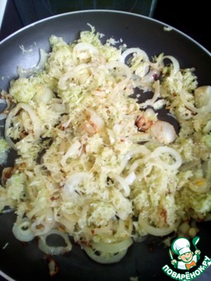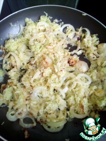 В сковородку к луку добавляем редьку и слегка обжариваем