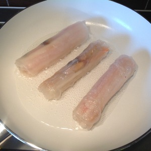 В сковороде разогреть растительное масло и обжарить спринг-роллы в масле по 1 минуте с каждой стороны.