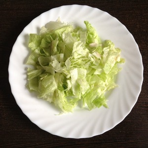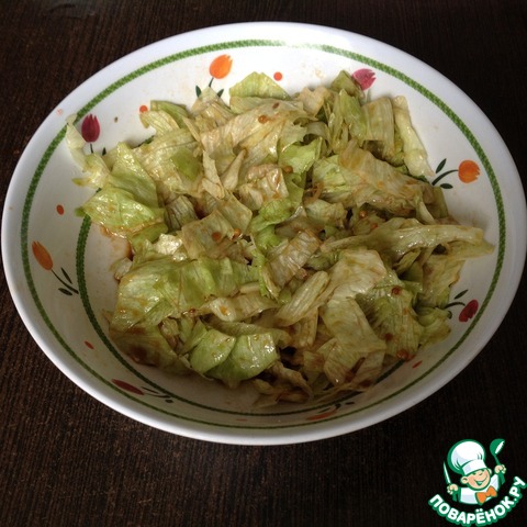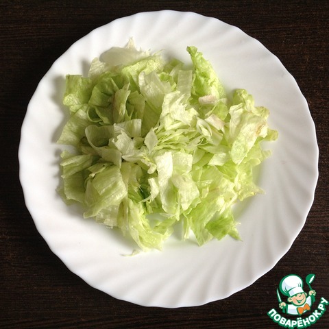 Салатные листья моем, обсушиваем на полотенце. Рвем на несколько частей.