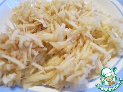 Яблоки очистите от кожуры и натрите на крупной терке.