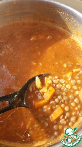 Когда вода закипит, снимите крышку и убавьте огонь. Варим чечевицу около 30 минут, пусть кипит медленно. Следите, чтобы вода не выкипела, если что, можно немного подлить. -