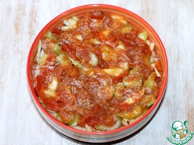 8) Заливаем соусом сельдерейный верх, накрываем посуду крышкой или фольгой и отправляем в разогретую до t 180 С духовку, ~40 минут. Готовим до приготовления блюда.
