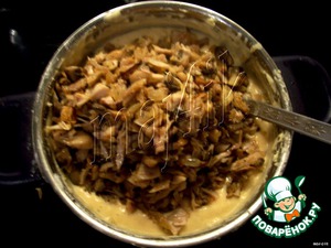 Всыпать грибно-курино-луковую зажарку и снова перемешать.