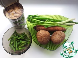 - Шампиньоны (консервированные) — 1/2 бан.