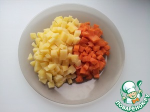 Картофель и морковь нарезать кубиками.
