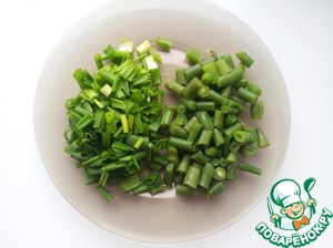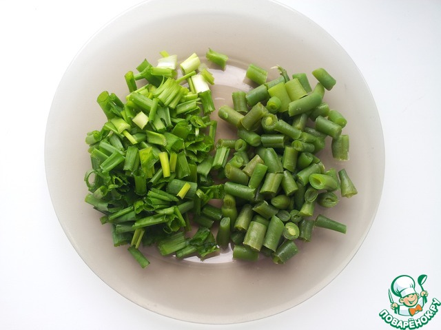 Стручковую фасоль и зеленый лук измельчить.