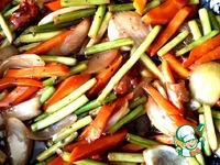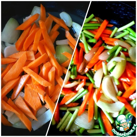 (Так же я использую болгарский перец и стручковую фасоль, но на тот момент, к сожалению, их не оказалось. Можно добавить брокколи, цветную капусту, баклажан, все, что вашей душе угодно (цуккини не советую, в них слишком много воды))