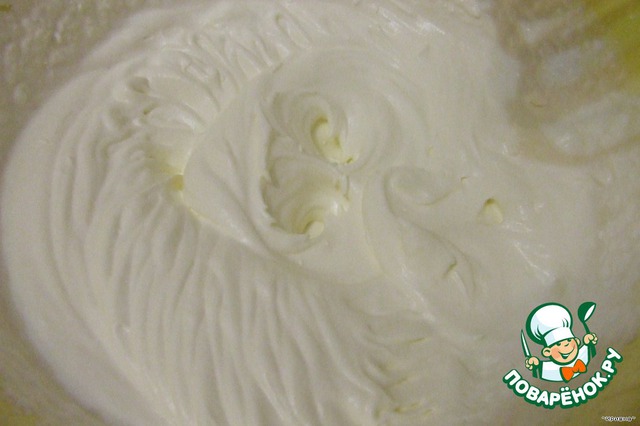 Следующий этап приготовления: нам нужно сливки добавить в творожно-йогуртовую массу и аккуратно перемешать.