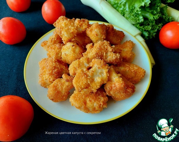 Доброго времени суток, дорогие мои поварята! Как известно, вариантов, как пожарить цветную капусту, существует превеликое множество. Я же хочу поделиться с вами незатейливым рецептом оооочень вкусной жареной цветной капусты. В нем имеется маленький секретик, о котором я и расскажу вам. Попробуйте приготовить, и это блюдо не оставит вас равнодушным!