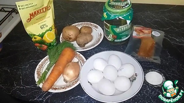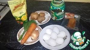 Подготавливаем продукты. отвариваем картофель, морковь и яйца.