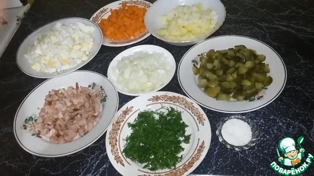 Ингредиенты для «Овощной салат с копченым окорочком»: