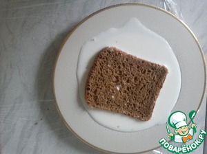 Смочить хлеб молоком, вот так в тарелочке, можно использовать кондитерскую кисточку