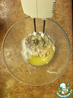 Взбиваем масло с сахаром до белого цвета. Затем вбиваем яйцо и ванильный сахар.