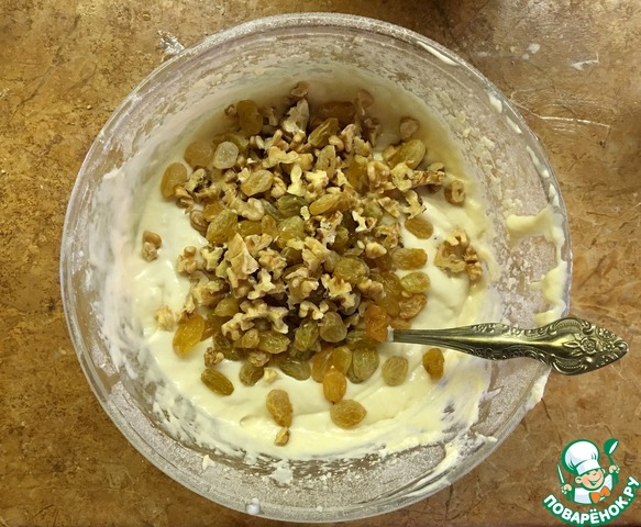 Финальным шагом добавляем начинку. Сегодня я выбрала орехи и изюм :)