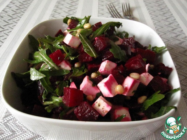 Представляю Вашему вниманию салат из вареной свеклы с рукколой, кедровыми орешками и рассольным сыром. Рецепт не сложный в приготовлении, а вот результат получается очень эффектный и вкусный! Пальчики оближешь!