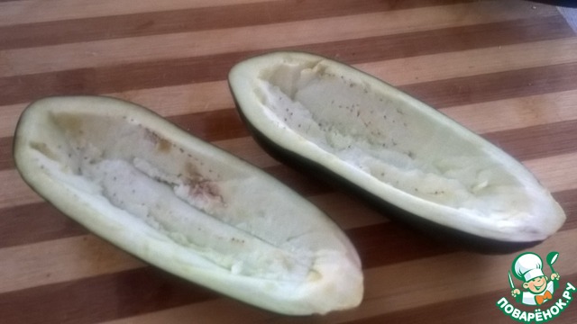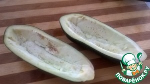 Наполнить начинкой половинки баклажан