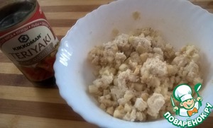 К мякоти добавить творог и маринад Терияки от Kikkoman