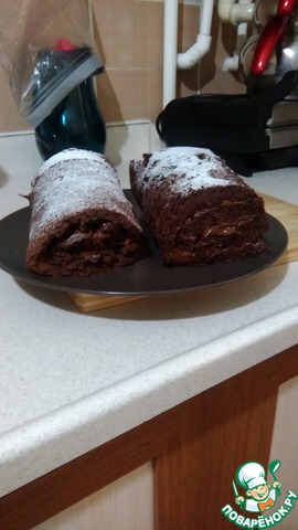 Готовый рулет щедро посыпать сахарной пудрой. Готово!