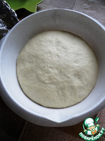 Скатать тесто в шар, смазать маслом и дать расстояться до увеличения объема в два раза.