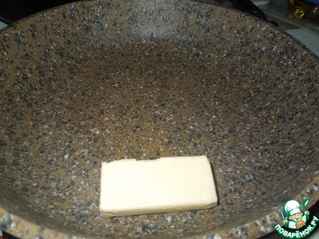 В глубокой сковороде растапливаем половину сливочного масла и добавляем половину оливкового.