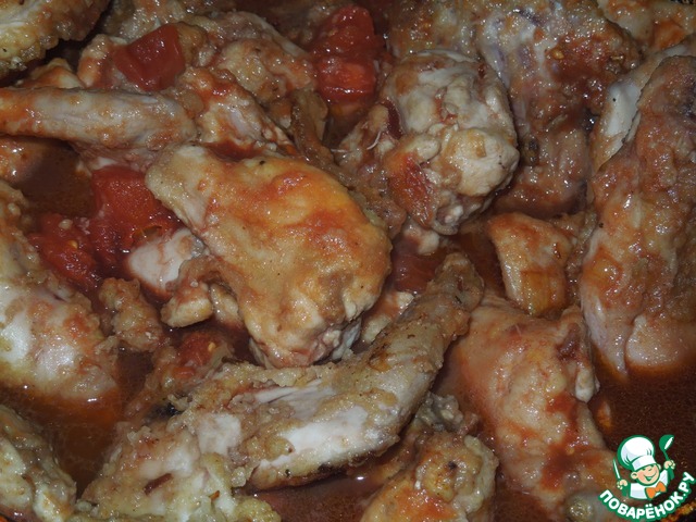 Меняем масло в сковороде и обжариваем в ней порезанный кубиками лук и пропущенный через пресс чеснок. Когда лук подрумянится, выкладываем кролика, добавляем вино, помидоры и орегано. Уменьшаем огонь и тушим, пока вино не выпарится на треть. На данном этапе можно добавить специи, если кролик вышел пресным.