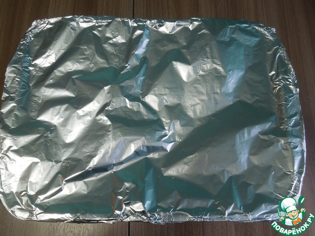 После тушения выкладываем кролика в форму для запекания (можно в этой же сковороде, если позволяет конструкция). Сверху форму накрываем фольгой и запекаем в духовке 1 час при температуре 160-180 градусов