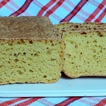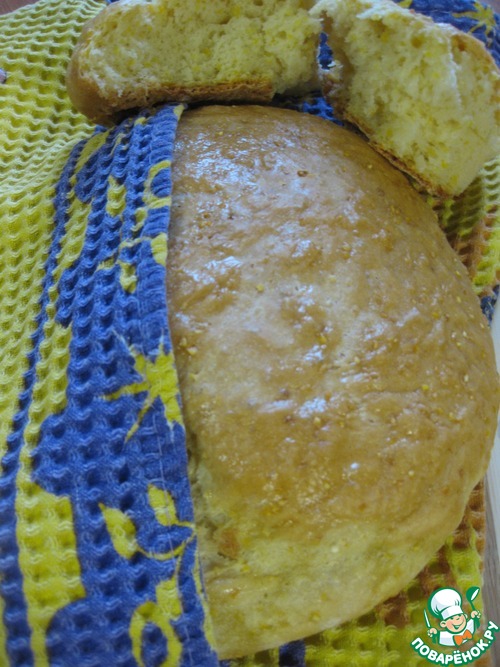Это мой эксперимент с кукурузной крупой в выпечке хлеба. Помню, как то пекла кекс из кукурузной крупы по рецепту с Поваренка, и он мне очень понравился именно самой структурой теста, вот и решила попробовать добавить ее в хлеб. Получился ароматный, воздушный, сдобный хлеб, с яркими вкраплениями кукурузной крупки и с легким похрустыванием. Можно подавать к обеду или даже к чаю с джемом.