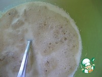 В теплом молоке разведем сахар и дрожжи, поставим в теплое место на 10-15 минут для образования дрожжевой шапочки