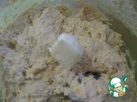 Вымешиваем густое тесто и добавляем размягченное сливочное масло или маргарин, - тщательно все еще раз вымесить
