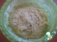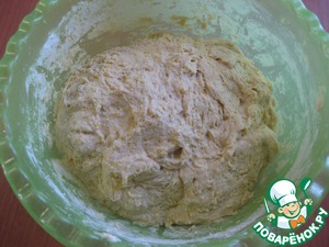 Теперь смотрим на тесто и если нужно, добавляем пшеничной муки и вымешиваем не тугое тесто, оно будет немного рыхлой консистенции и липнет к рукам ( сразу хочу сказать, - я боялась "забить" тесто мукой, поэтому и хлеб у меня вышел более воздушный, и при подъеме, булки немного расплылись, если вы хотите более плотный мякиш, то вымешивайте более плотное тесто)