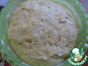 Обмять тесто и поставить его еще раз на подъем ( второй раз оно поднялось быстрее и выше)