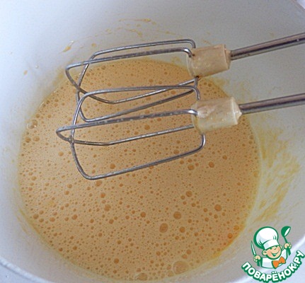 Яйца взбить с сахаром, после добавить растопленный маргарин и снова перемешать хорошо.
