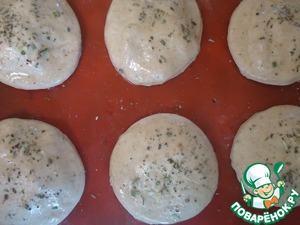 Смазать растительным маслом и посыпать сушеной зеленью, в моем случае " Весенняя зелень".