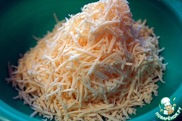 Поставить в духовку, запекать при температуре 200 градусов 25 минут. Вынуть противень, посыпать все тертым сыром.
