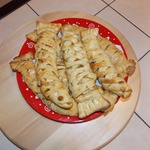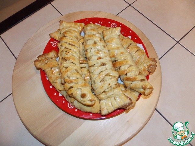 Я боялась, что сочная начинка протечет и испортит пирог. Поэтому в итоге тесто вышло толстоватое. Если делать обычный пирог, будет равномернее. Или вот пирожки, как я сделала из оставшегося теста. -