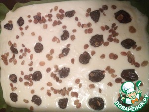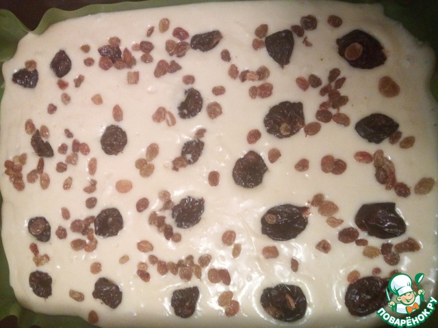 Добавляем чернослив и изюм к тесту, слегка утапливаем ягоды.