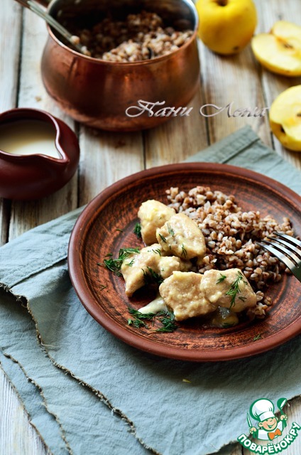 Мягкая, нежная куриная грудка в яблочной подливке. С каким-нибудь гарниром - милое дело!!! А если бы еще посыпать рубленой зеленью - вообще красота бы была!:)