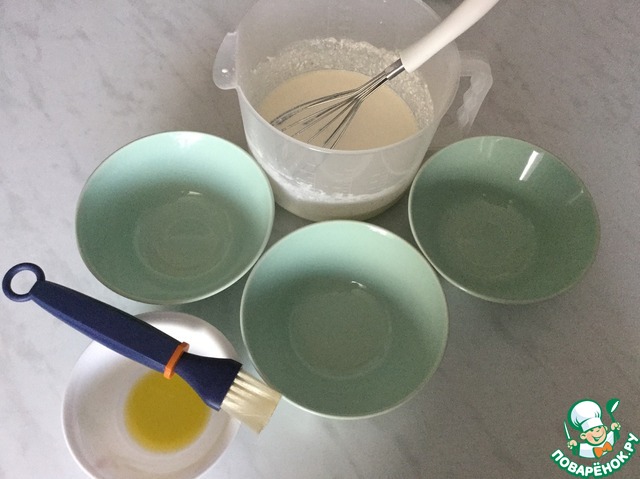 Готовлю креманки, оливковое масло, кисть для смазывания и саму начинку.