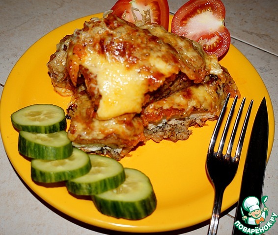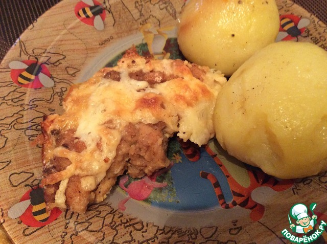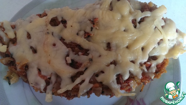 Я ещё посыпала сверху смесью сыров (у нас продаётся уже натертая смесь разных сыров) и поставила в духовку на 1-2 минуты. В оригинале рецепта был только пармезан. -
