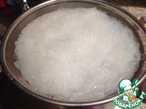 Через 5-7 минут, откидываем фунчозу на дуршлаг. И даем хорошенько стечь.