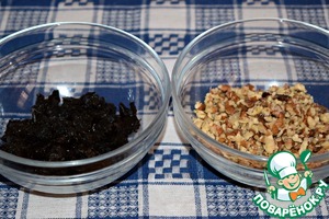 Чернослив нарезать произвольно, не очень крупно. Если чернослив сухой, то заранее замочить его в горячей воде до мягкости. -
