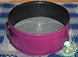 Дно формы (диаметр 18 см) простелить бумагой для выпечки. Стенки и дно формы смазать растительным маслом.
