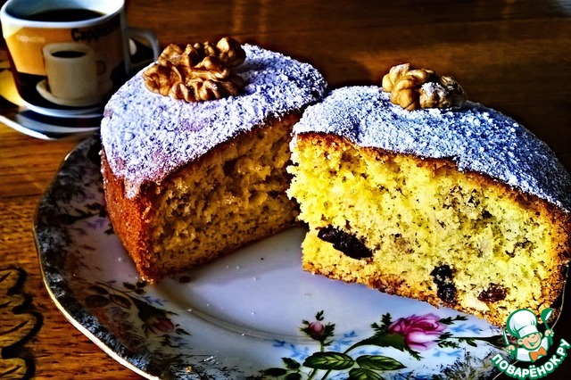 Рецепт «Простой пирог с черносливом и орехами»:
